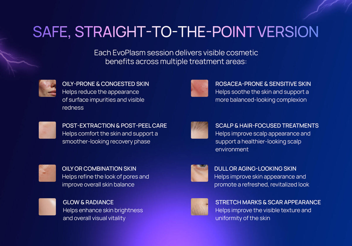 Antibacterial Purification. Cold plasma reduces the presence of microbes on the skin’s surface, supporting improved overall skin condition and clarity.