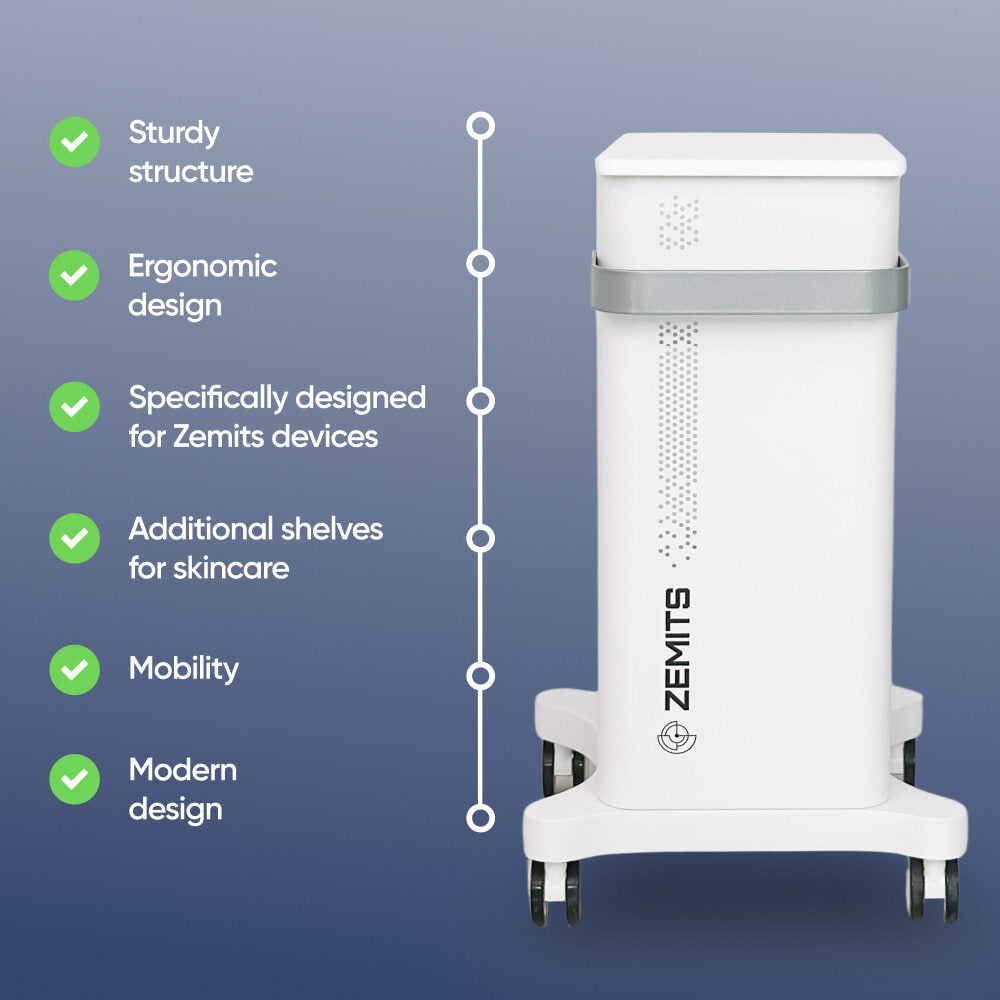 This trolley is tailored for Zemits devices and will be an indispensable assistant for every beautician. It ensures convenient storage of skincare products, maximizing efficiency during sessions.
