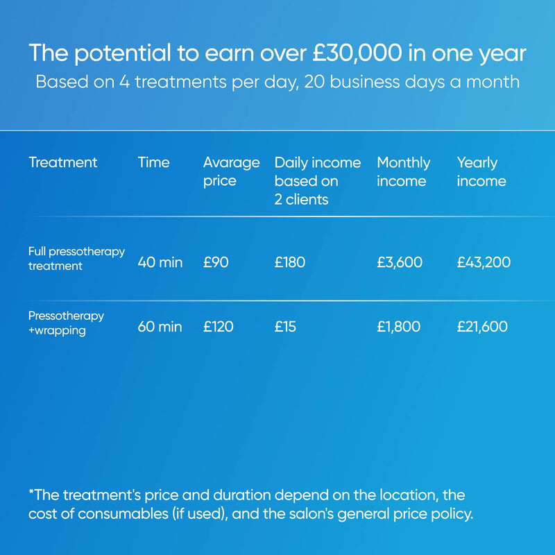 ⭐️Hands-free short sessions. Pressotherapy treatment takes an average of 30-45 minutes, allowing more booking. Plus, you can offer facials treatment simultaneously